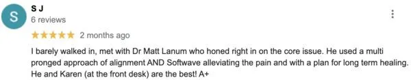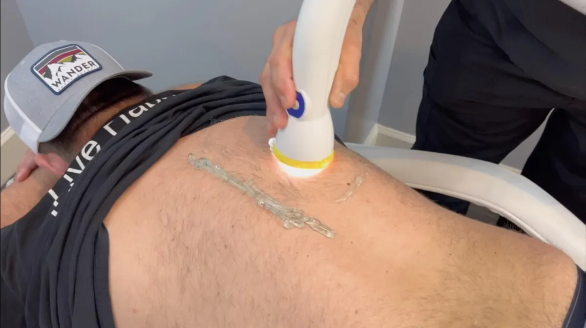 It uses energy waves to penetrate deep into the tissue to promote blood flow, circulation, reduce inflammation and eliminate pain while also stimulating the migration of your body’s stem cells for long-term healing.