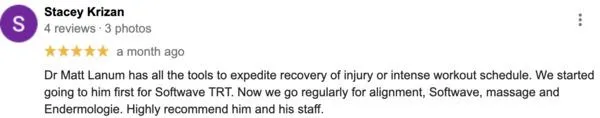 3. TRT SoftWave™ is scientifically validated to recruit and activate endogenous stem cell production, allowing the body to truly start healing from within. Additionally, not only is this SoftWave™ machine used for treatment, it also has a diagnostic feedback in which the “origin of pain” can be precisely identified, serving an invaluable tool for proper treatment. This feedback mechanism allows us to know exactly where the problem is.